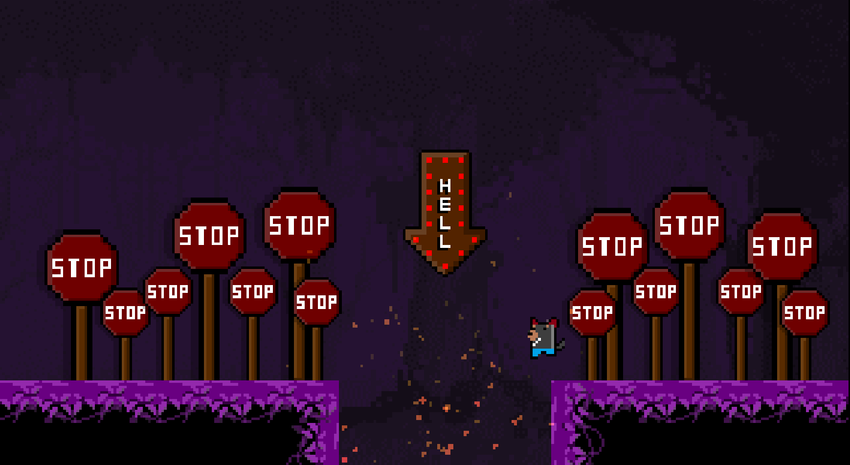 Pick up and play precision platforming including double jumping, wall jumping, wall sliding, and various level specific mechanics and hazards. Collecting Purple Apples provides greater challenge if you desire such things. Meet Satan.